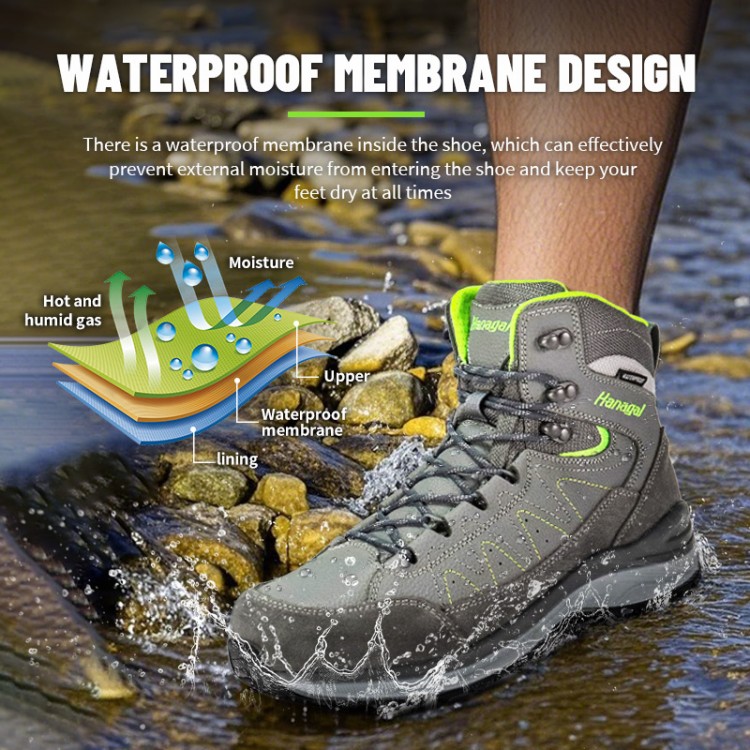 Nəfəs ala bilən Çınqıllı Taxıl Dəri Trekking Ayaqqabı dağlar və vəhşi təbiət üçün nəzərdə tutulmuş yeni açıq trekking ayaqqabımızdır, suya davamlı və sürüşməyən, üst dəri materialı aşınmaya davamlı və cızıqlara davamlıdır, rezin altlıq güclü tutuşa malikdir, müxtəlif ssenarilərə uyğunlaşır, açıq hava idmanı həvəskarları üçün çox uyğundur.