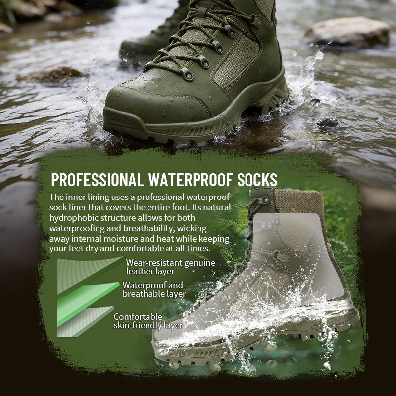 Kobud ərazi. Gizli təhlükələr. Gözlənilməz torpaq. Deşilməyən Suya Dayanıqlı Döyüş Çəkmələri aşağı baxmaq və narahat olmaq imkanı olmayan anlar üçün hazırlanmışdır. Dırnaqları, şüşələri və iti zibilləri dayandıran deşilməyə davamlı orta altlıq, üstəlik yaş şəraitdə hərəkətinizi təmin edən tam suya davamlı qoruma ilə hazırlanmışdır. Əlavə məlumat üçün bizə sorğu göndərin.