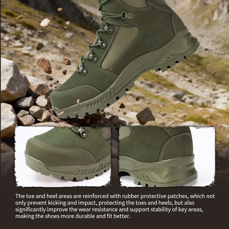 Ayaq barmağı və daban rezin yamaqlarla gücləndirilir. Bu, zərbələrə və zərbələrə qarşı daha yaxşı qorunma, əlavə dayanıqlıq və ən çox ehtiyac duyduğunuz yerdə dəstək deməkdir.